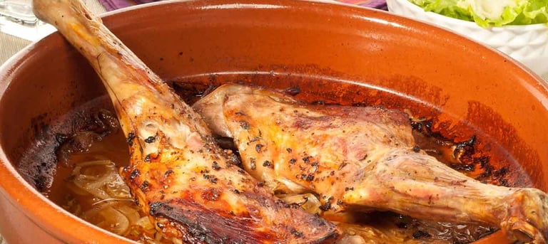 PIERNA DE CABRITO AL AROMA DE CARBON.